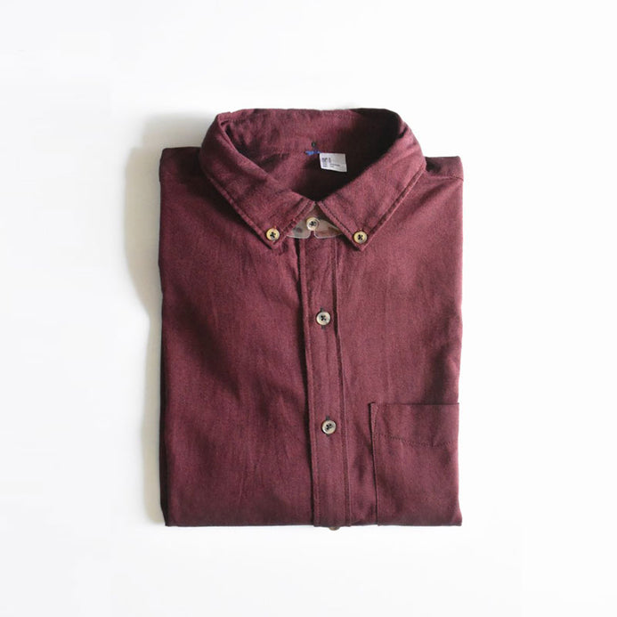 DID Button Down Self Textured Cotton Maron Casual Shirt