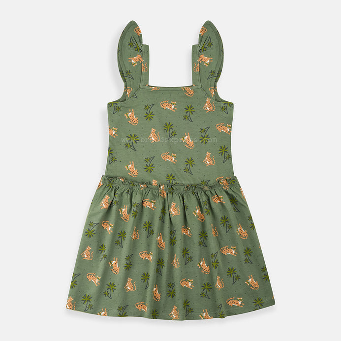 - ECO Jungle Print Olive Green Sleeveless Frock 7456