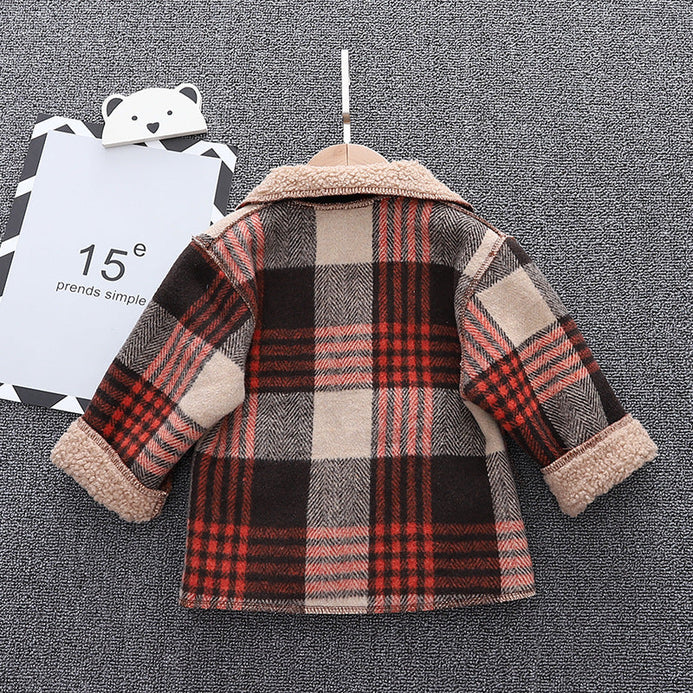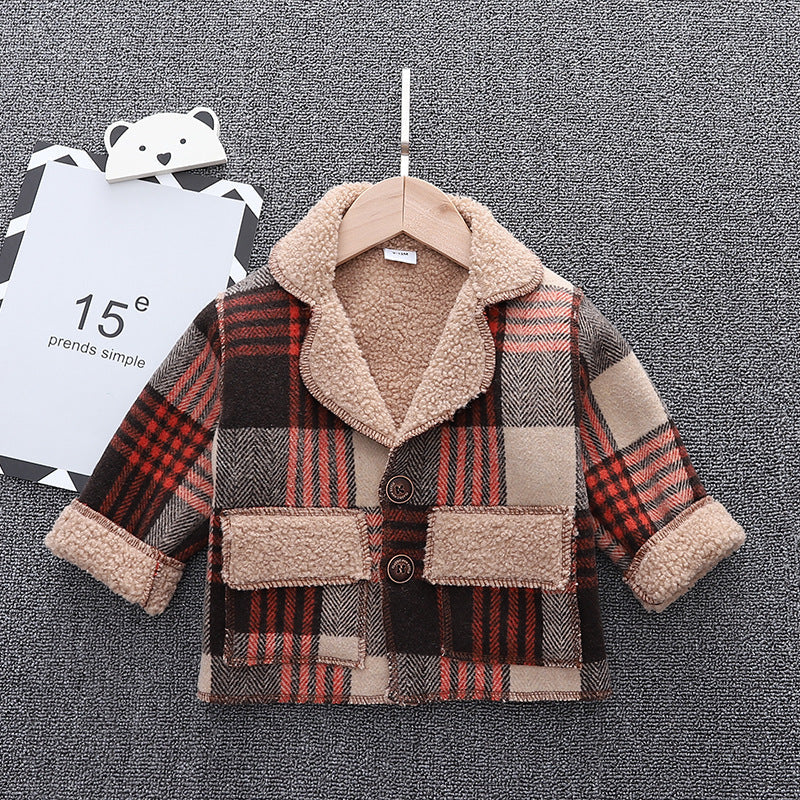 - F.Happiness Square Pocket Red & Beige Warm Woolen Coat 10533