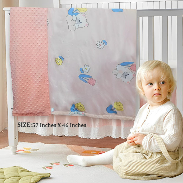 FBT Bear & Flowers Pink Double Layer Fabric Blanket 12297