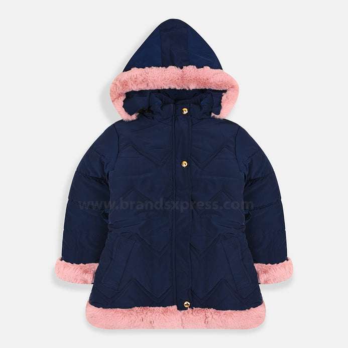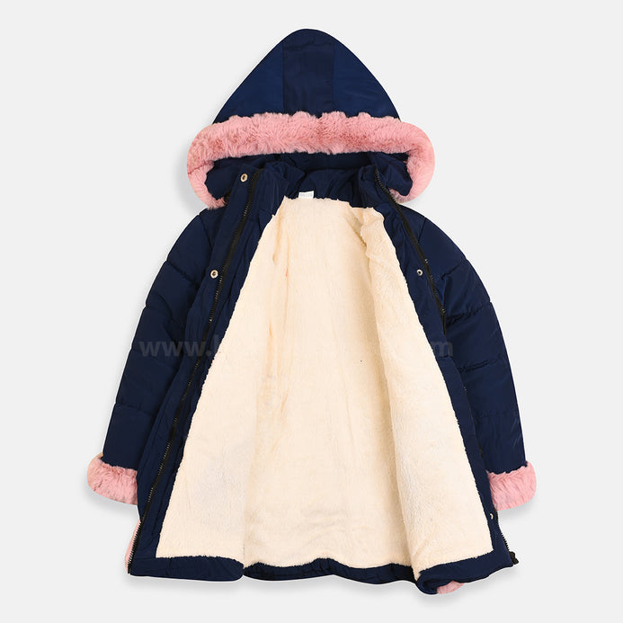 - FD Sports Furr Edge Quilted Blue Long Puffer Jacket 7975