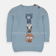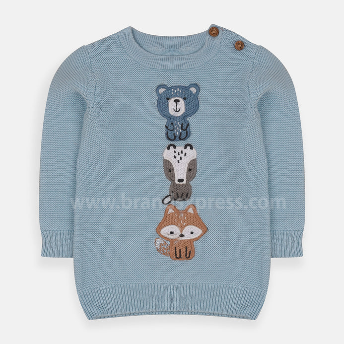 FF Jungle Animals Embroided Soft Blue Sweater 7849