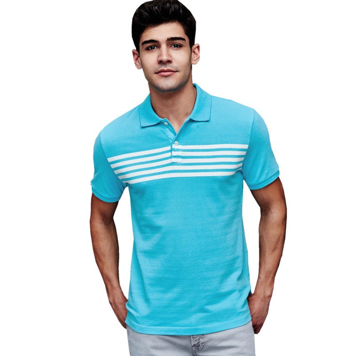 - GAP Light Blue And White Chest Stripe Pique Polo Shirt (Label Removed)