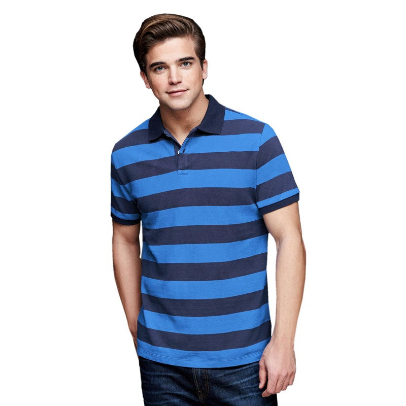 - GAP Navy Blue and Blue Stripe Pique Polo Shirt (Label Removed)