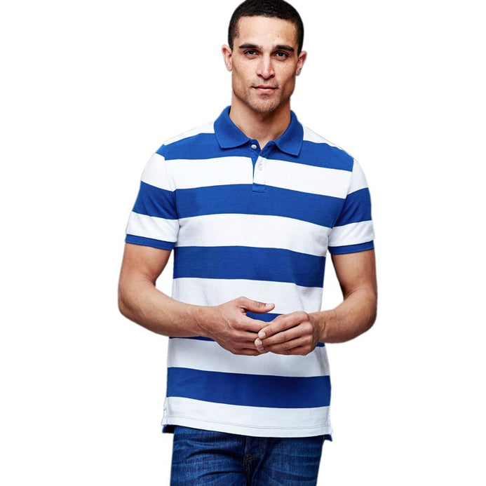 - GAP Rugby Navy Blue And White Stripe Pique Polo Shirt (Label Removed)