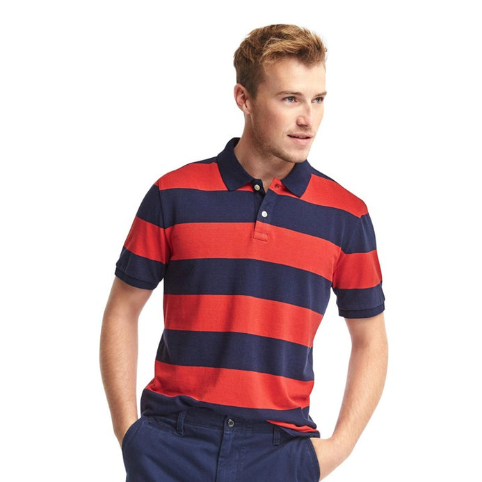 - GAP Rugby Orange And Blue Stripe Pique Polo Shirt (Label Removed)