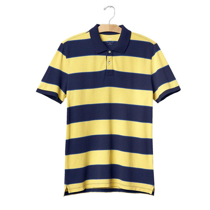 - GAP Yellow And Navy Blue Stripe Pique Polo Shirt (Label Removed)