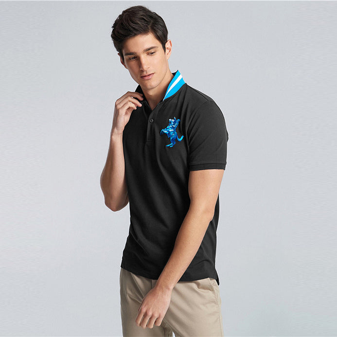 - GRN Blue Embroidery Napoleon Black Polo With Blue Arm Patch