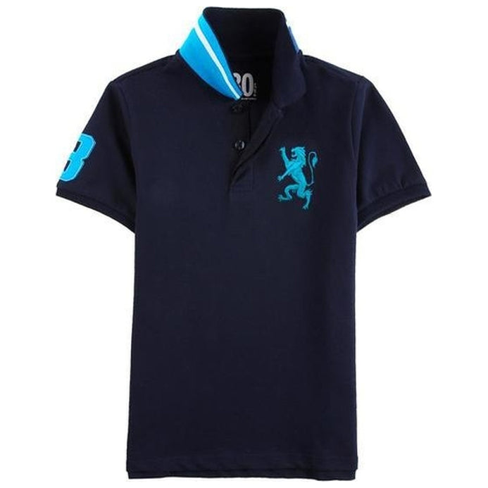 - GRN 3D Lion Blue Embroidery Navy Blue Polo