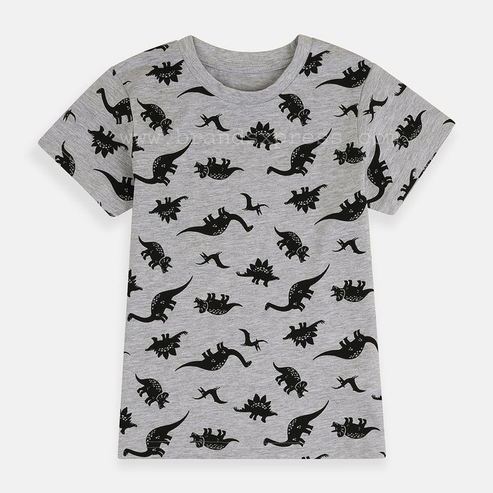 - GRG Dino Printed Texture Grey Tshirt 4870