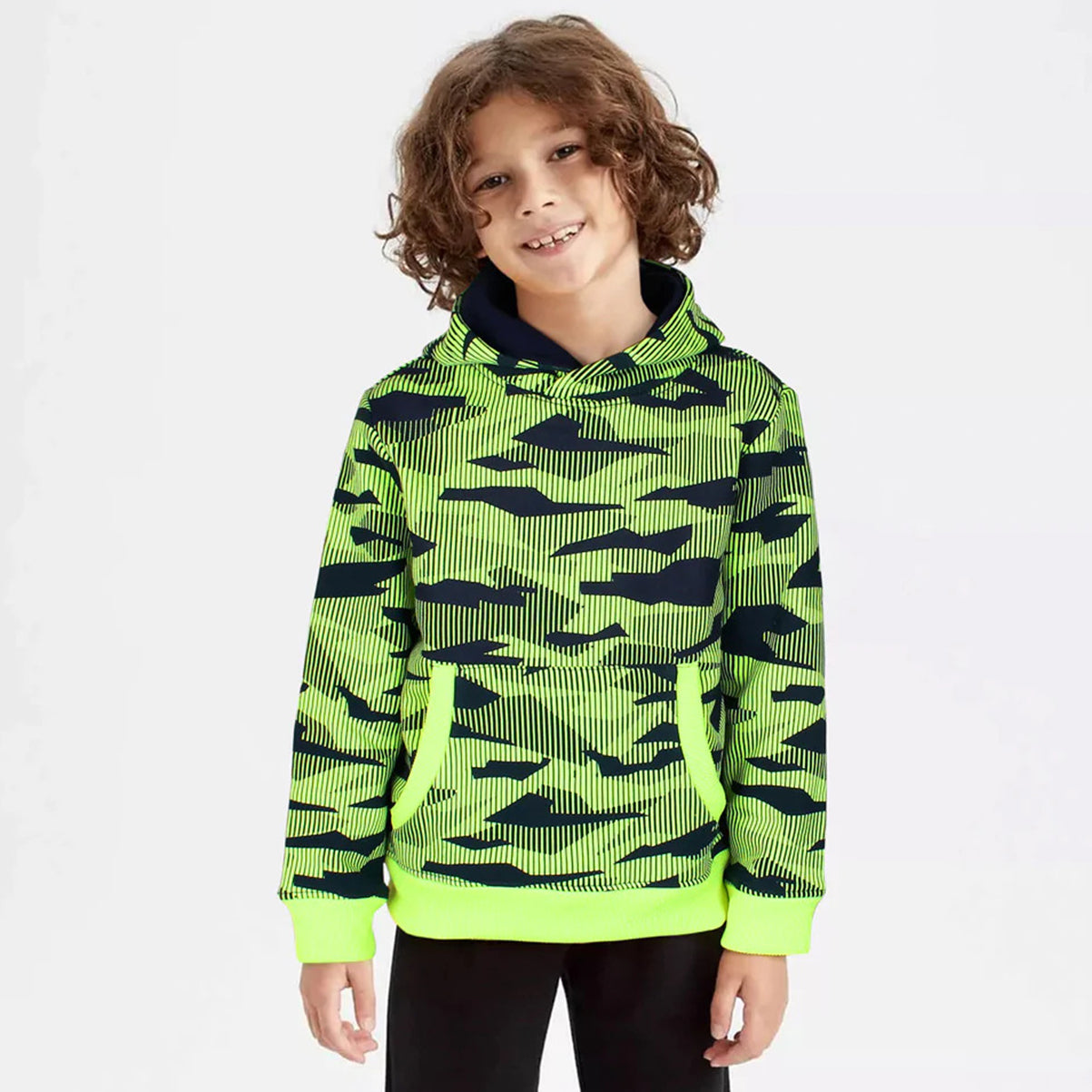 - GRG Neon Green Waves Print Fleece Hoodie 10567