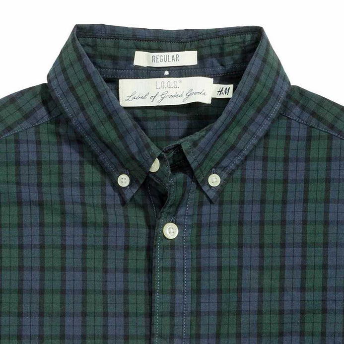 - H&M (L.O.G.G) Cotton Check Shirt Green