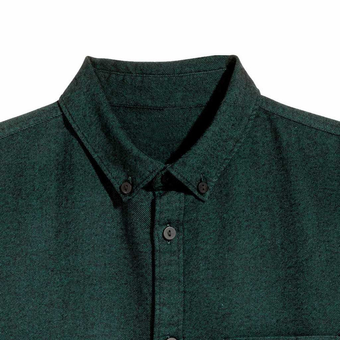 Long-sleeved shirt in soft, brushed cotton twill. Turn-down collar.