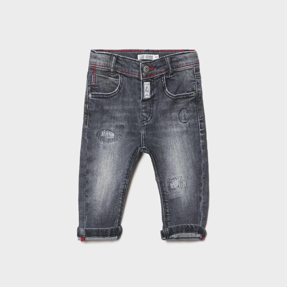 - OM Dark Grey Embroidery Ripped Denim 1146