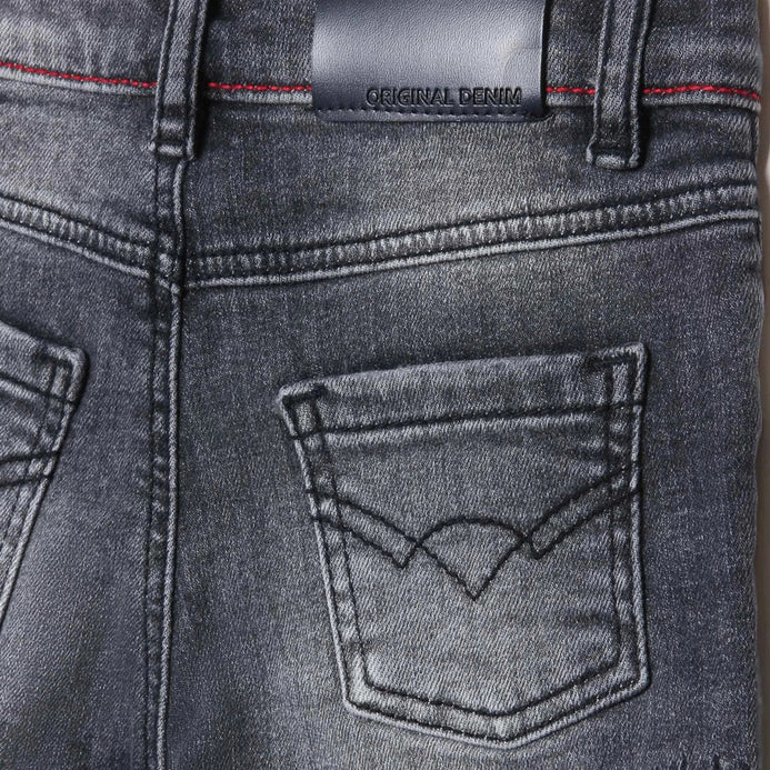 - OM Dark Grey Embroidery Ripped Denim 1146