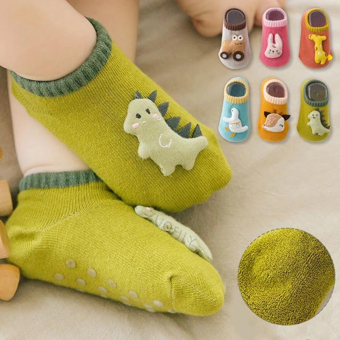 - HC Embroidered Dino Olive Antislip Socks 8634