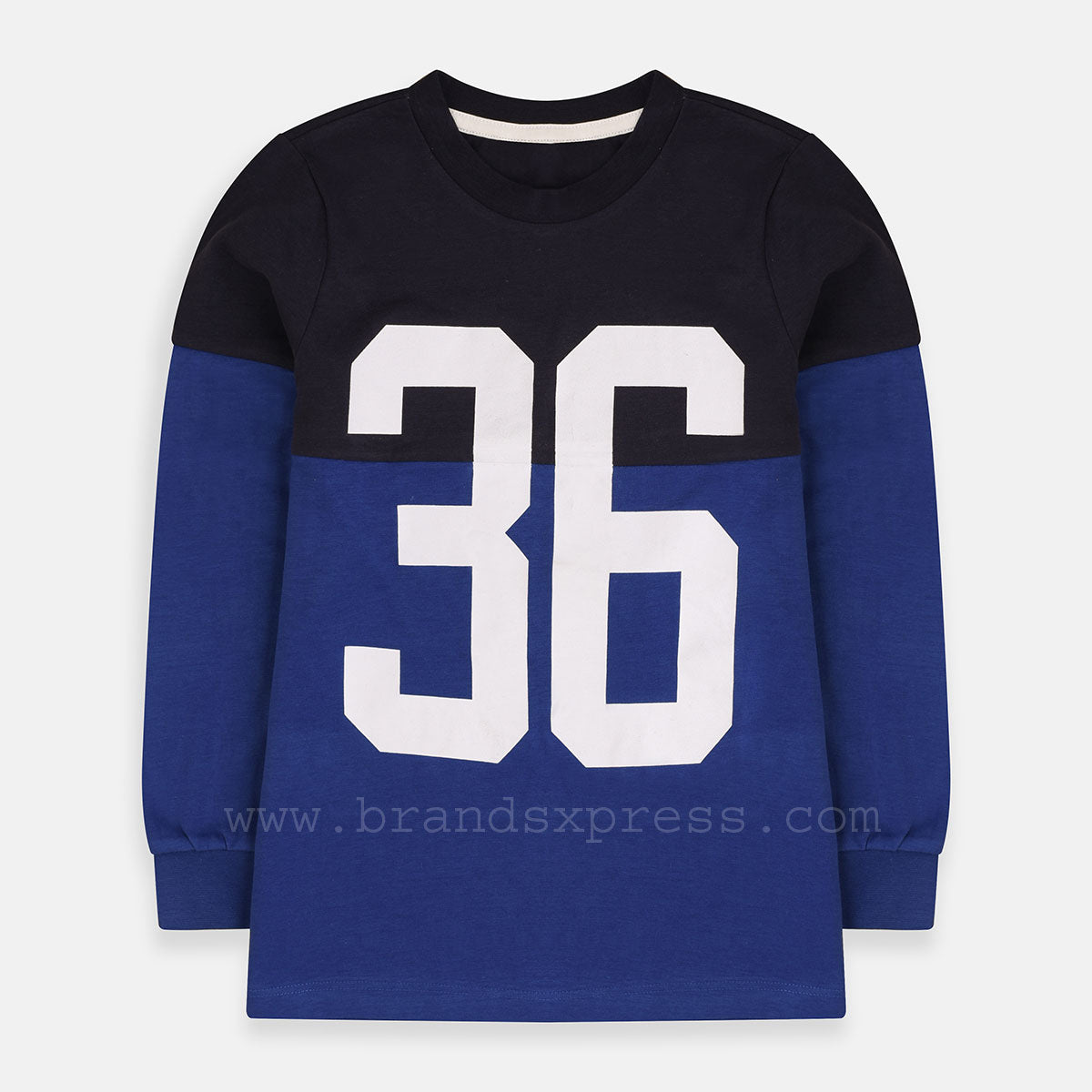 H 36 Print Block Patch Blue Full Sleeves Tshirt 7601