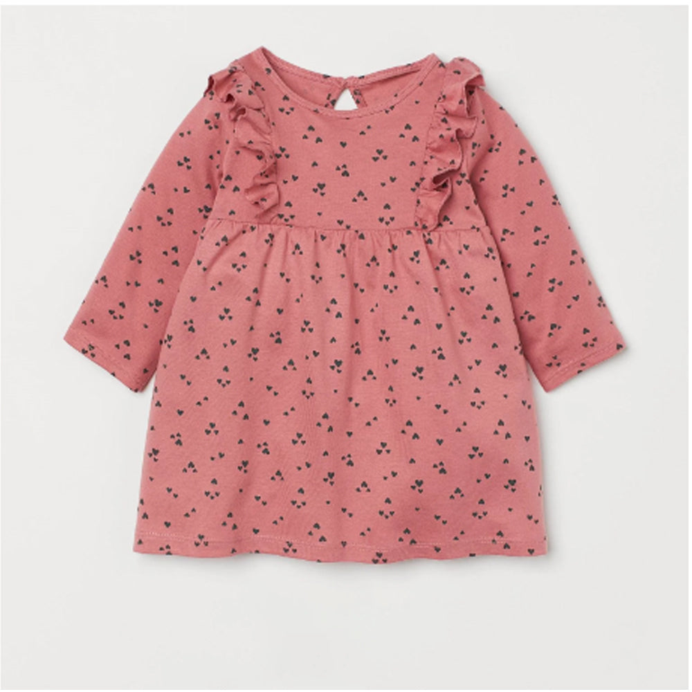 - HM All Over Little Hearts Print Pink Full Sleeves Frock 12256