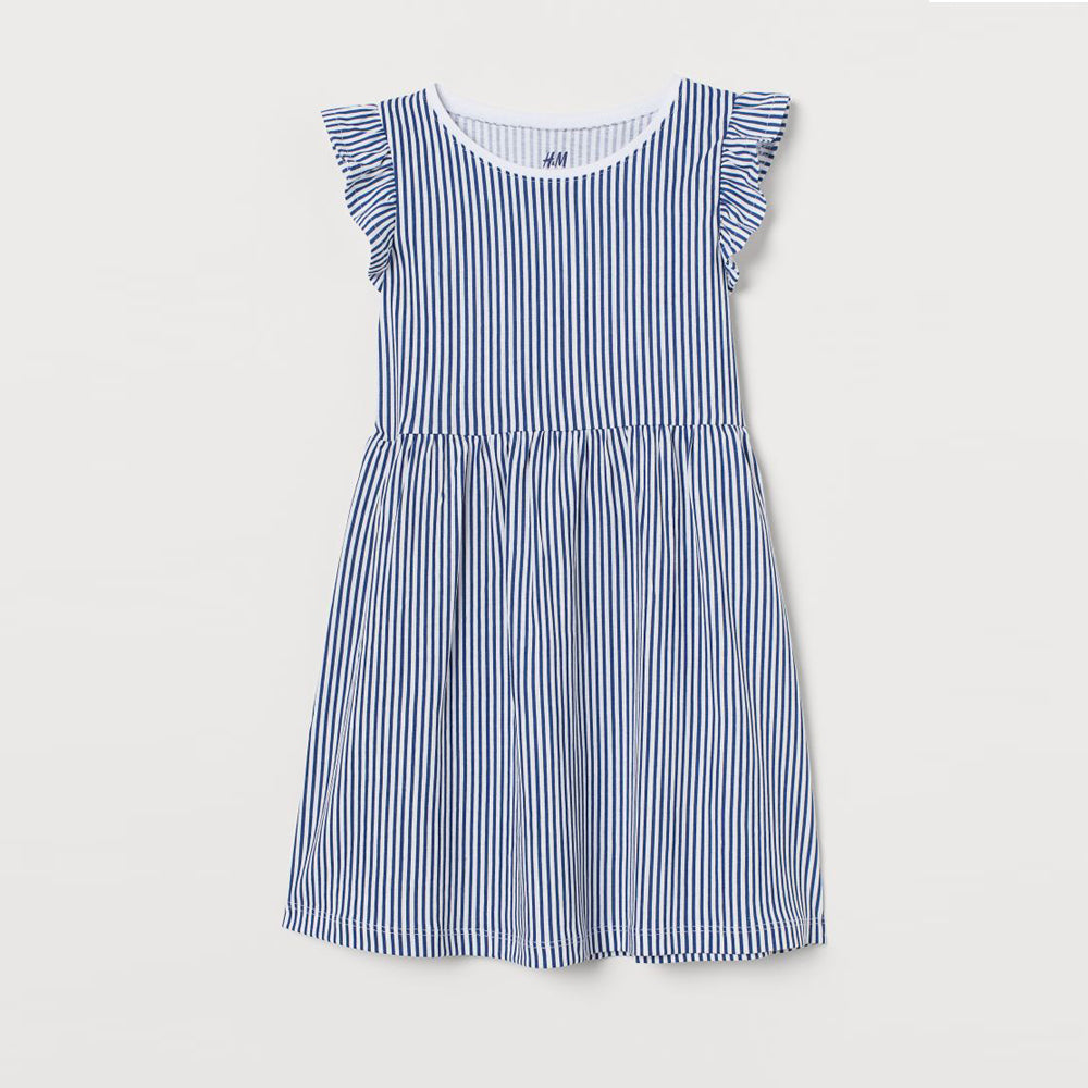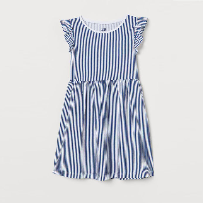 - HM Blue and White Lines Sleeves Frill Frock 2229