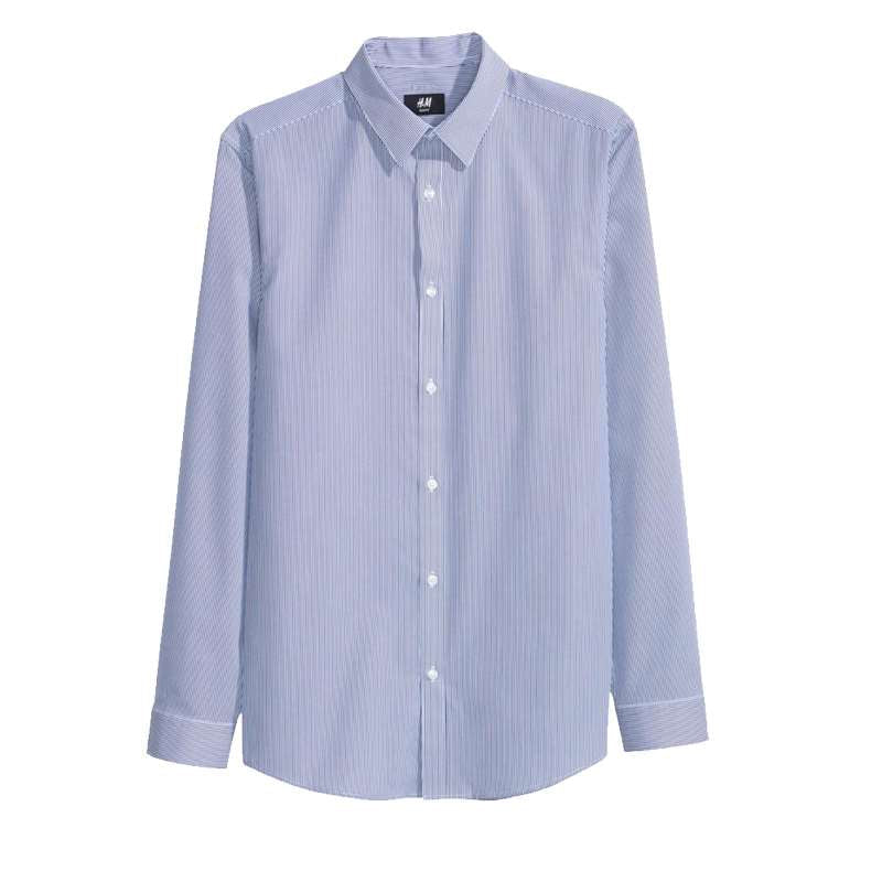 - HM Lining Easy Iron Slim Fit Blue Casual Shirt 8875