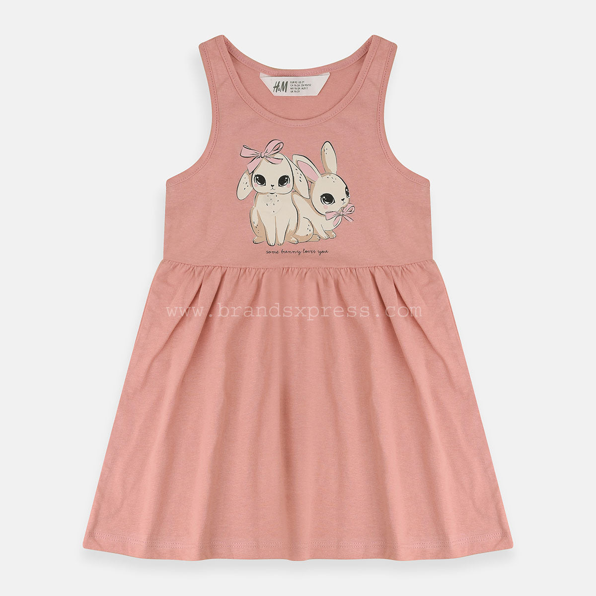 - HM Two Bunny Loves You Tea Pink Sleeveless Frock 7050