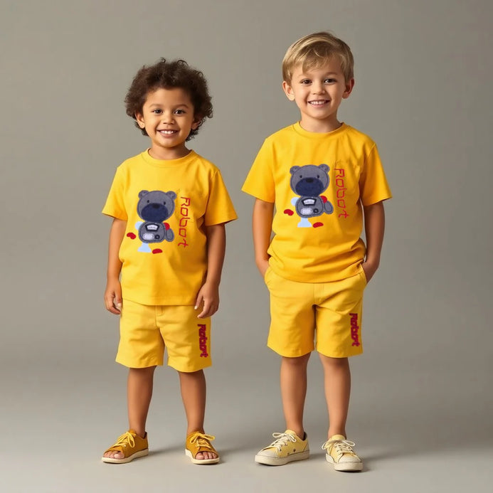 HT Robot Embroided Mango Yellow T-Shirt & shorts 2 Piece Set 14074