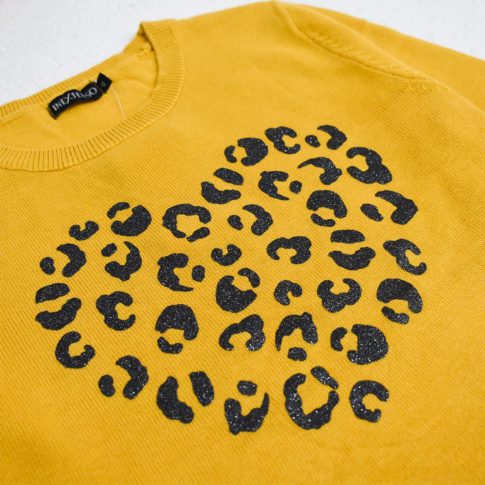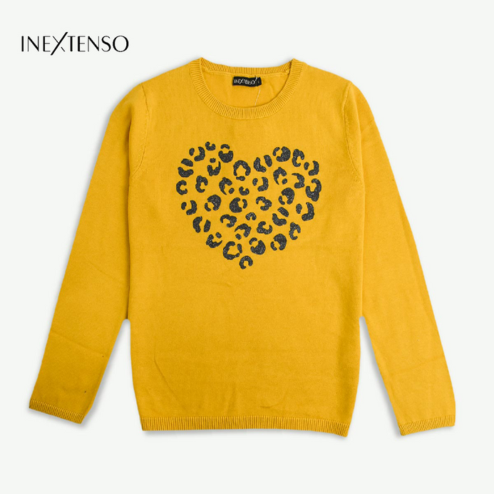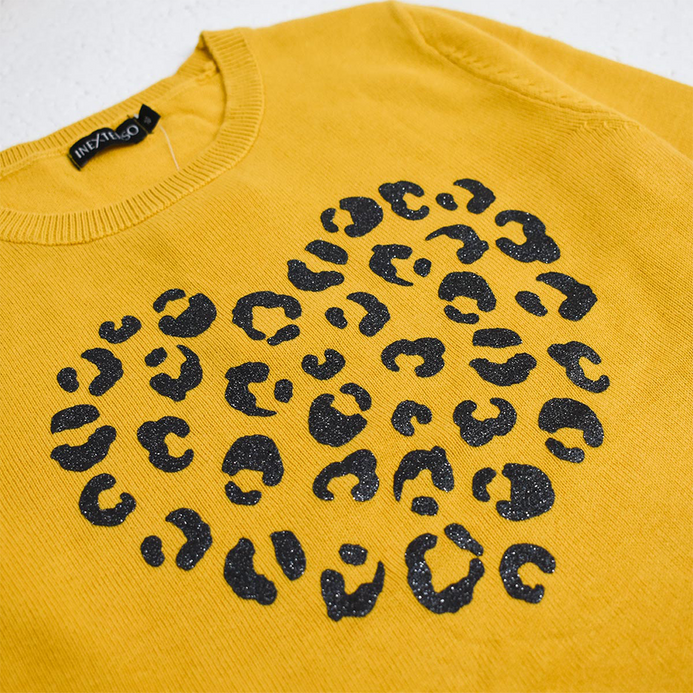 In Extenso Glitter Leopard Heart Yellow Swearter 10420