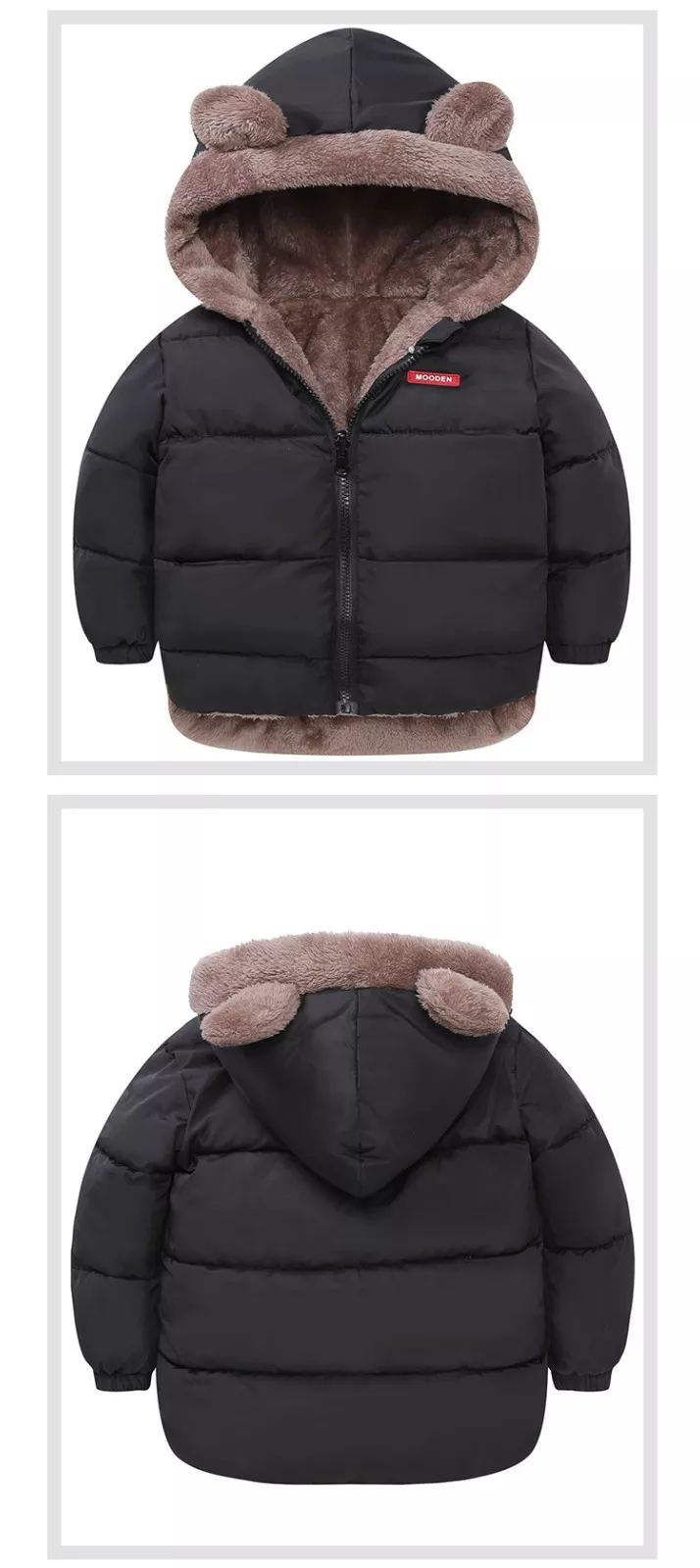- Jing Ping MTXXTZ Warm Full Sherpa Bear Black Double Sided Hooded Puffer Jacket 7652