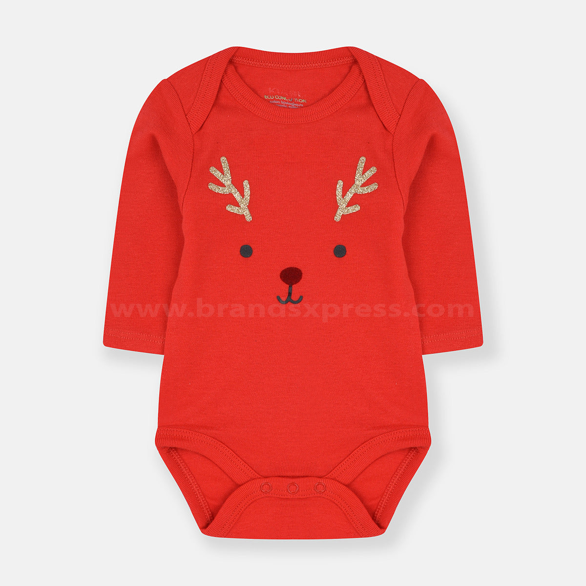 KB Glitter Deer Full Sleeves Red Bodysuit 7883