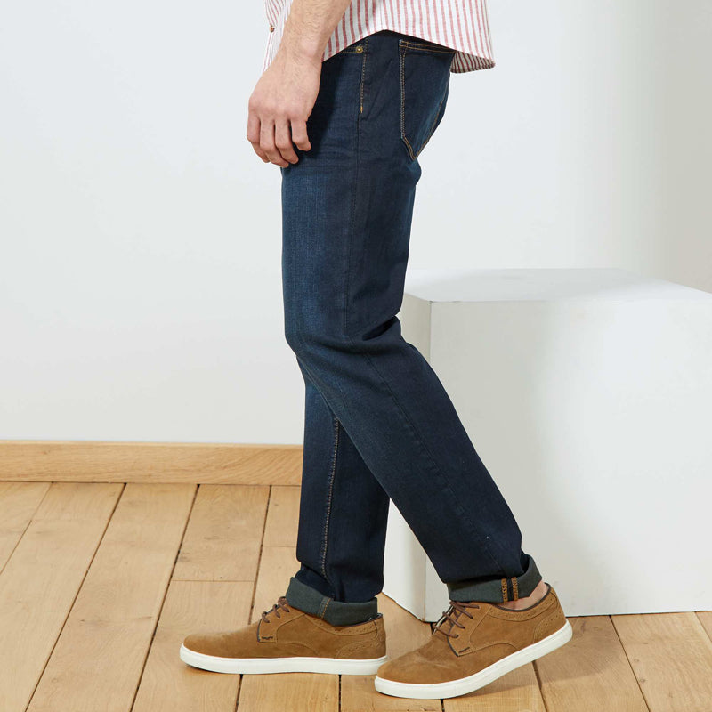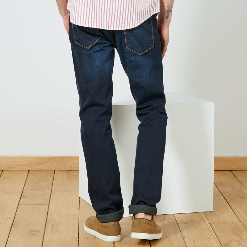 - KB Men Dark Wash Worn Effect Slim Stretch Jeans