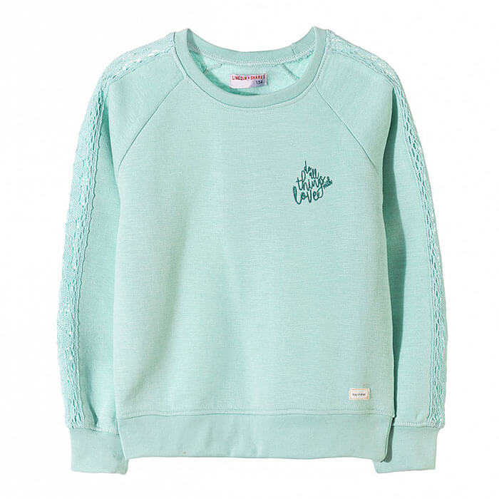 Iffat Zahoor Adorable & comfortable. My daughter often complains about how fabrics feel & she loves this lightweight sweatshirt & its lace design & aqua cool color.