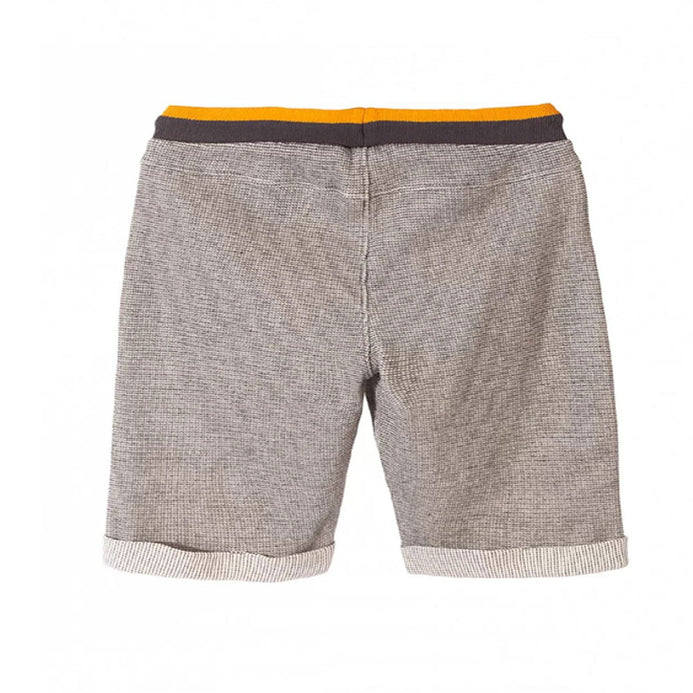 L&S Dot Textured Grey Shorts with Musturd Belt 1748