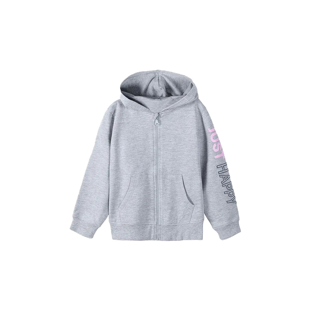 - L&S Just Happy Print Sleeve Grey Terry Zipper Hoodie 13447