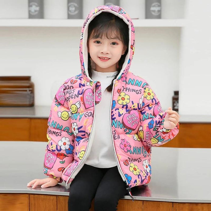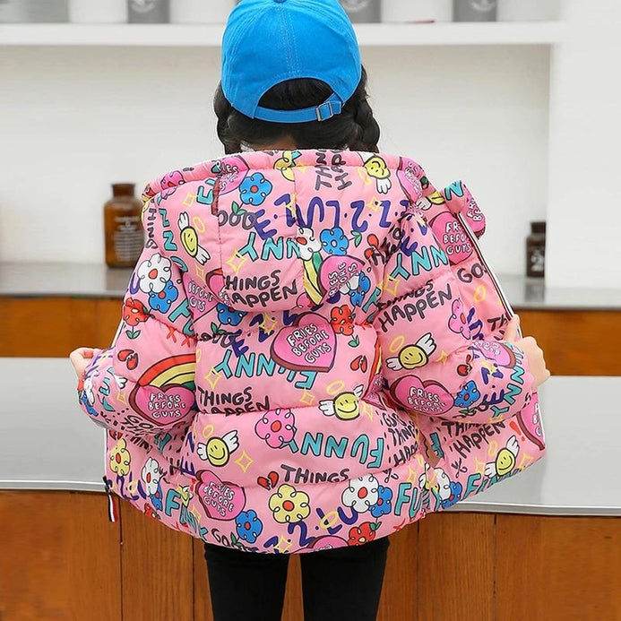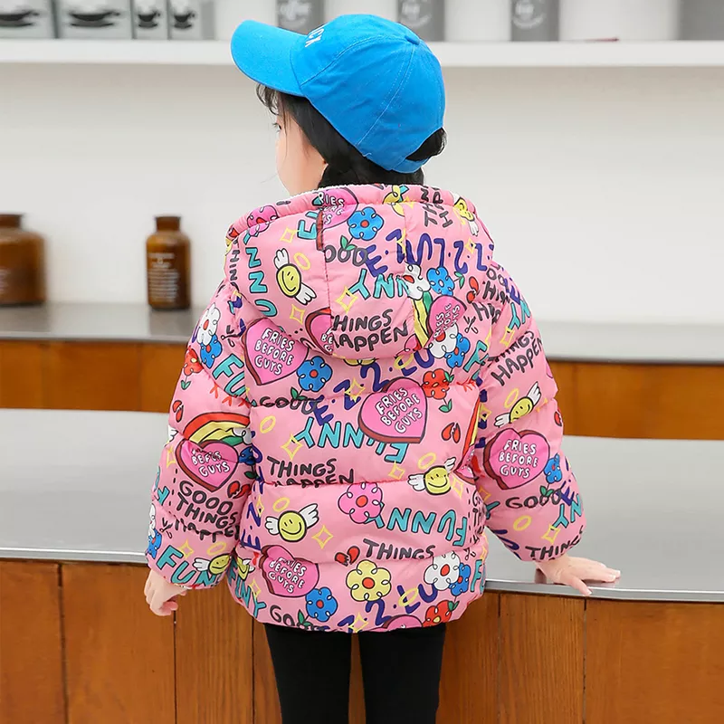 - LD All Over Things Happens Full Sleeves Tea Pink Puffer Jacket 8339
