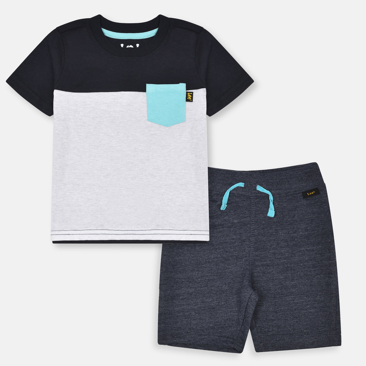 Lee Pocket Style White Block T-Shirt With Contrast Shorts 2 Piece Set 13037