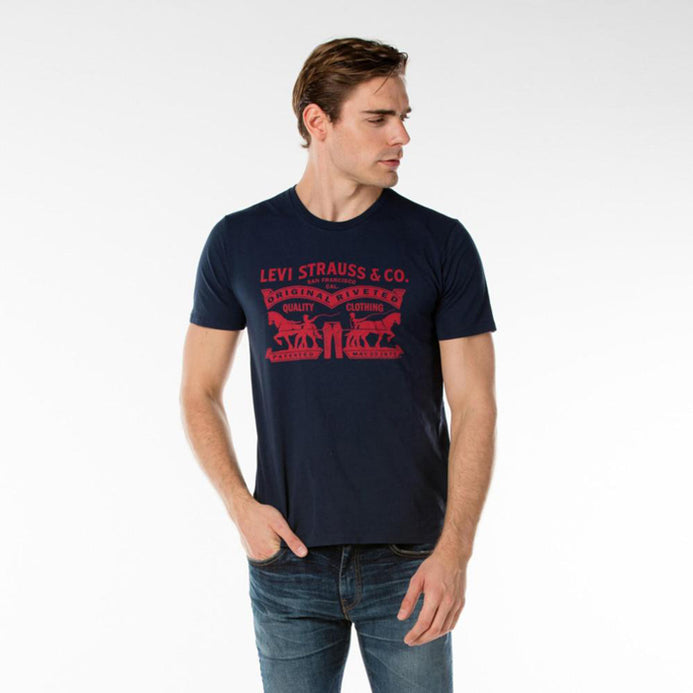 - Lev Men Two Horse Graphic Blue T-shirt with Red Print