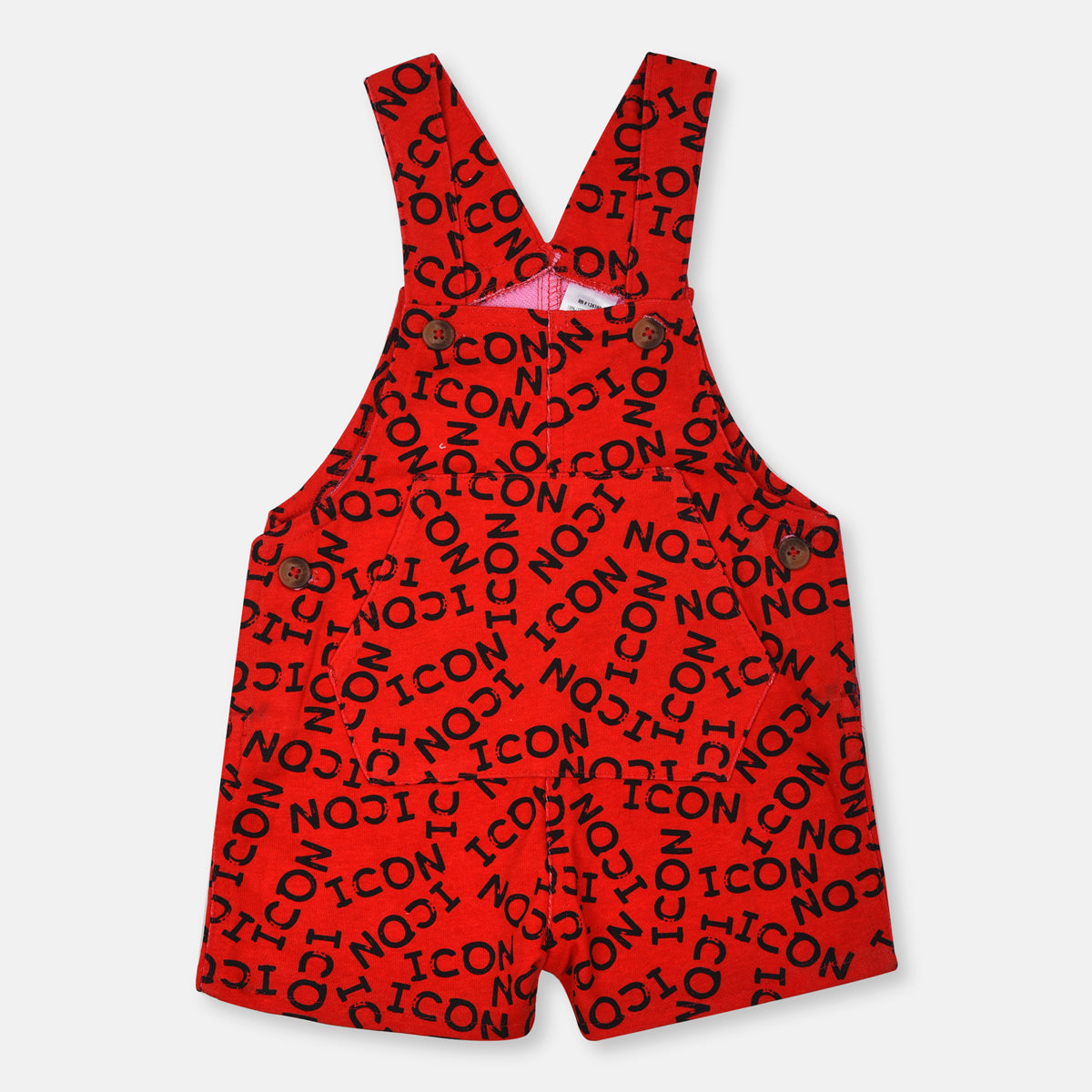 LL Icon Print Red Dungaree with Textured Grey Top 2 Piece Set 12873