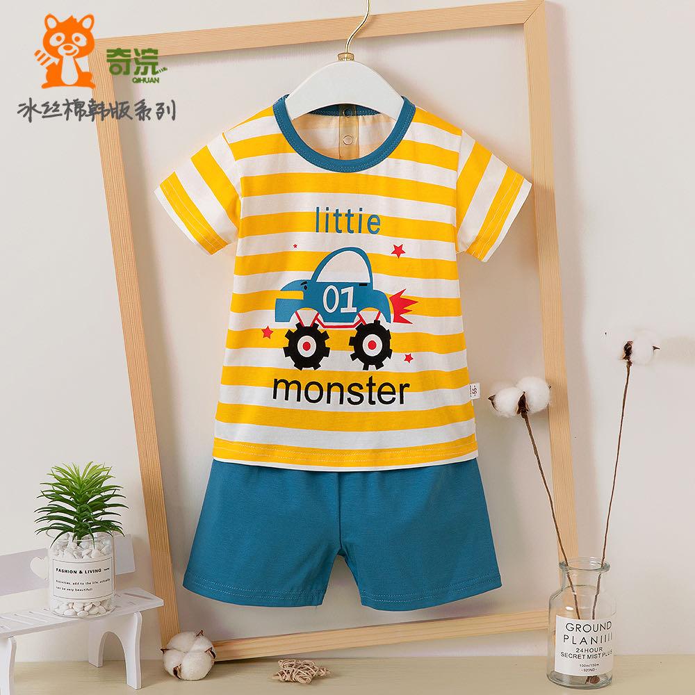 - Little Monster Truck Yellow & White Stripe Shorts 2 Piece Set 7024