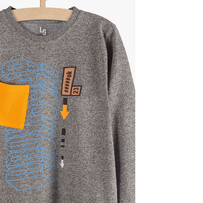 - LS Contrast Pocket OK Melange Grey Full Sleeves T-Shirt 8370