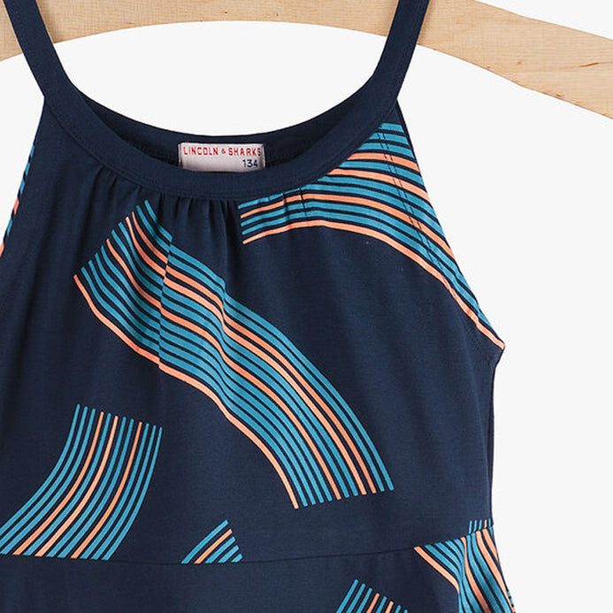 LS Geometric Pattern Navy Blue Summer Dress 3530