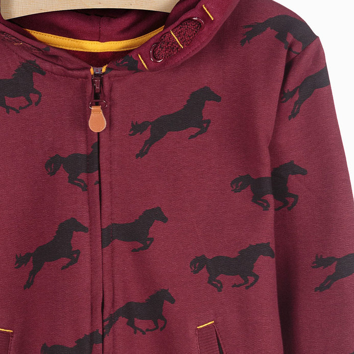 - LS Save The World Horse Print Maroon Fleece Zipper Hoodie 8439
