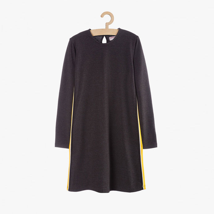 LS Side Tape Contras Stripe Charcoal Dress 3539