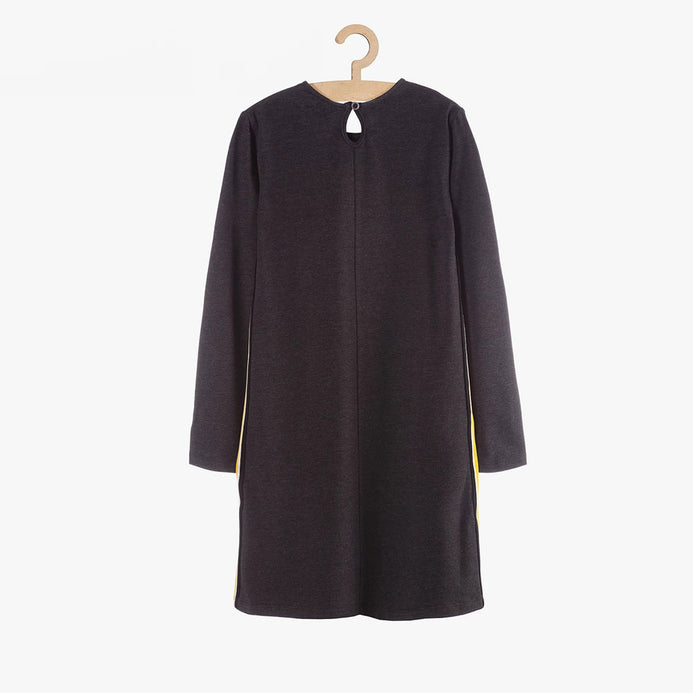 LS Side Tape Contras Stripe Charcoal Dress 3539