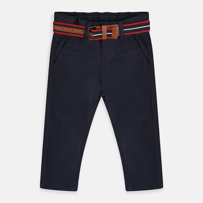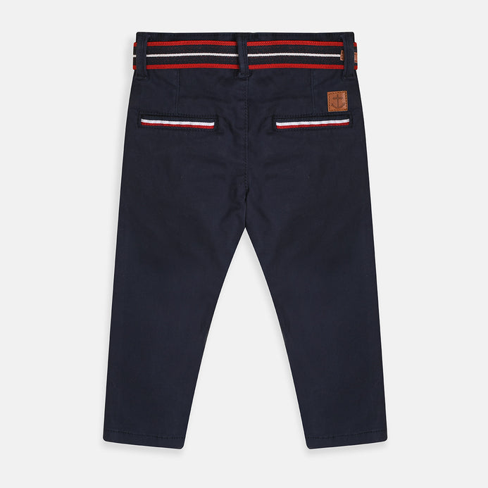 - LSN Contrast Belt & Pocket Navy Blue Cotton Pant 7067