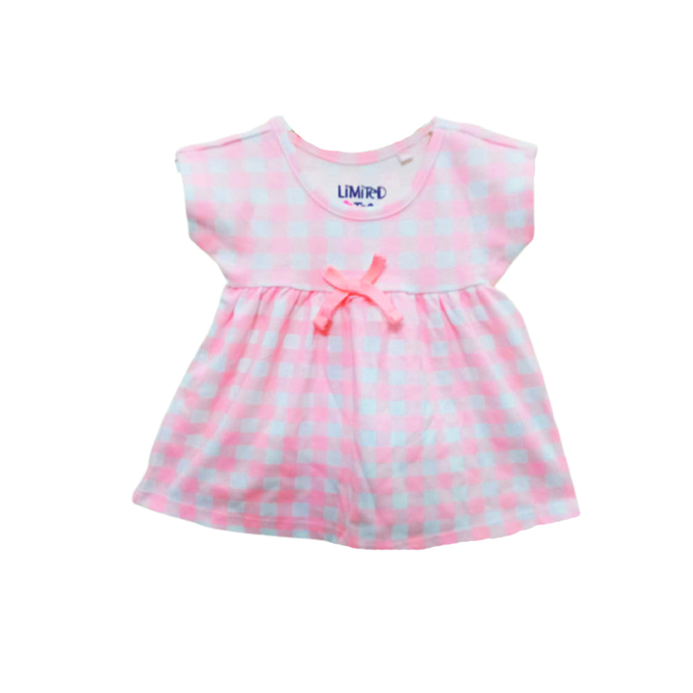 - LT Pink & White Box Check Front Knit Frock 11289