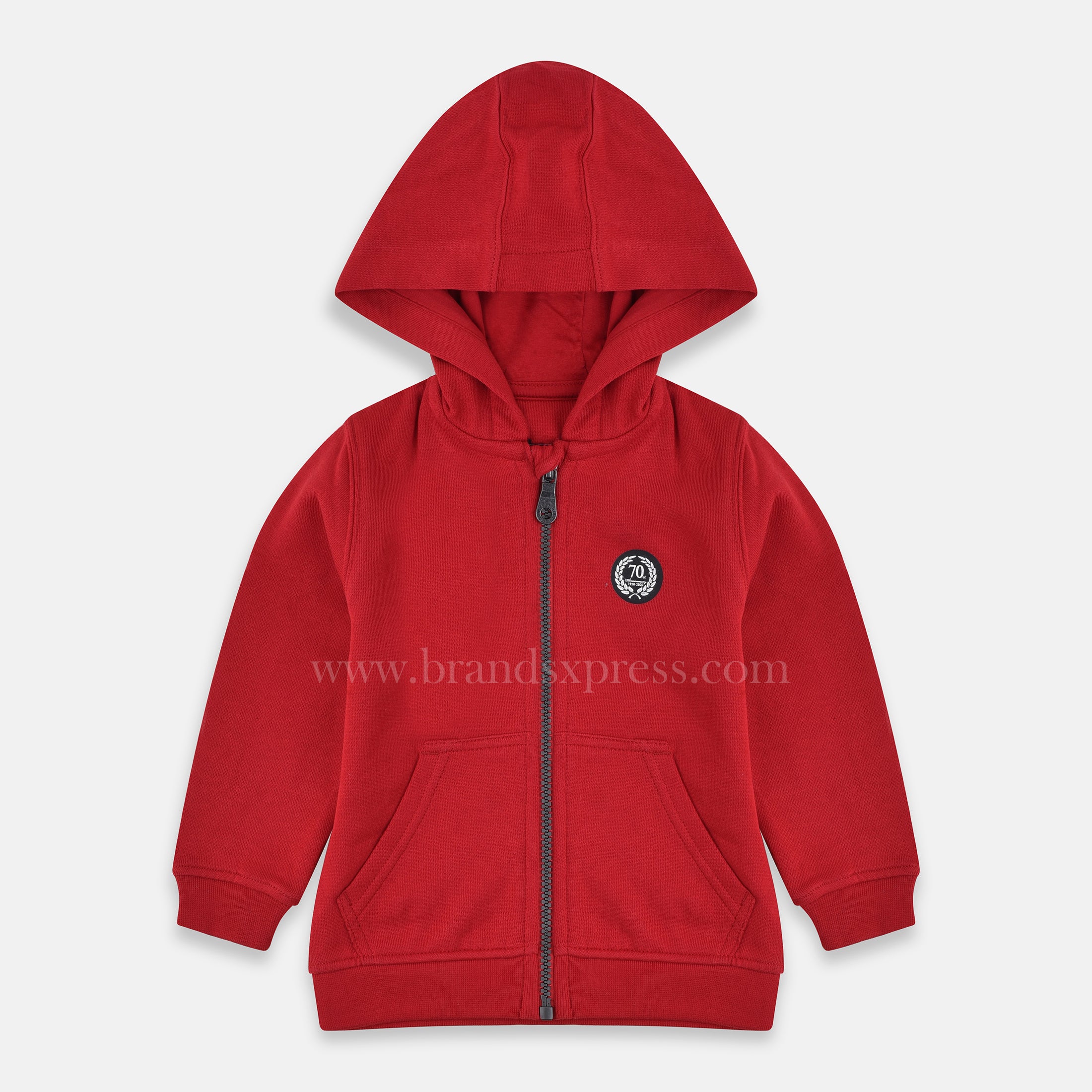 - L&S 70th Print Plain Red Zipper Hoodie 3140