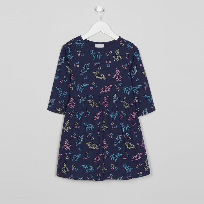 - MTL Multi Unicorn Printed Navy Blue Frock 1310