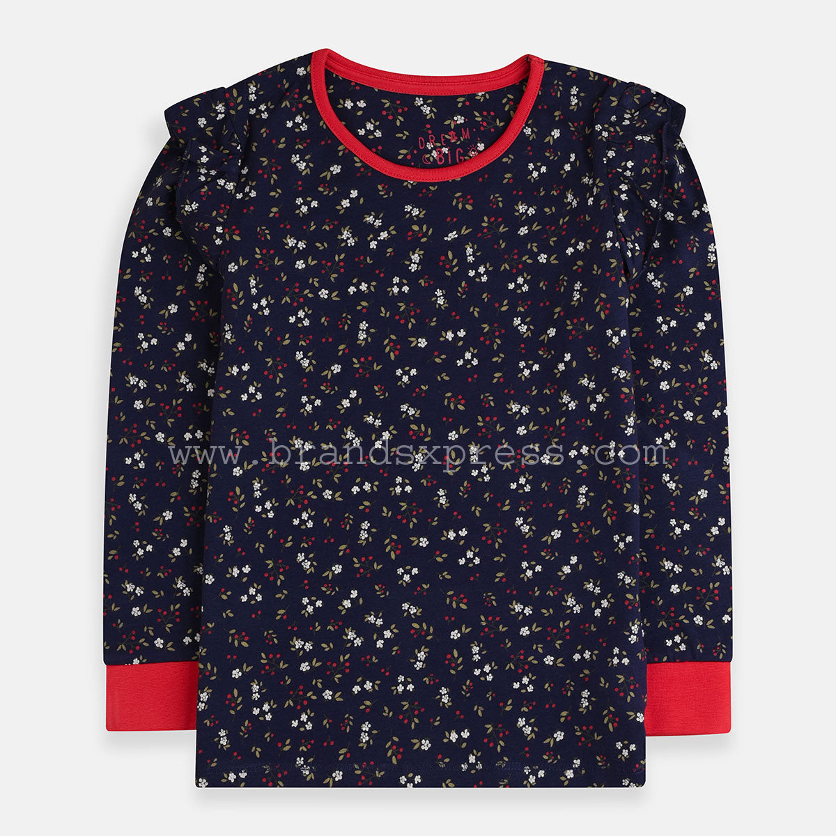 - MC All Over Flower Full Frill Sleeves Blue Tshirt 7583
