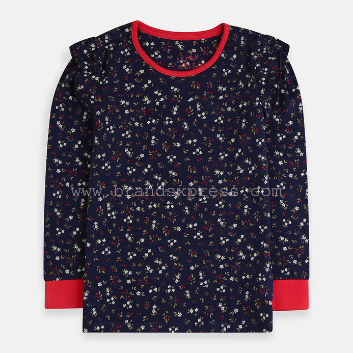 MC All Over Flower Full Frill Sleeves Blue Tshirt 7583