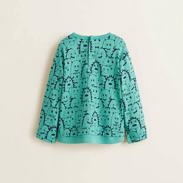 - MNG Monster Print Aqua Green Full Sleeves Tshirt 1198